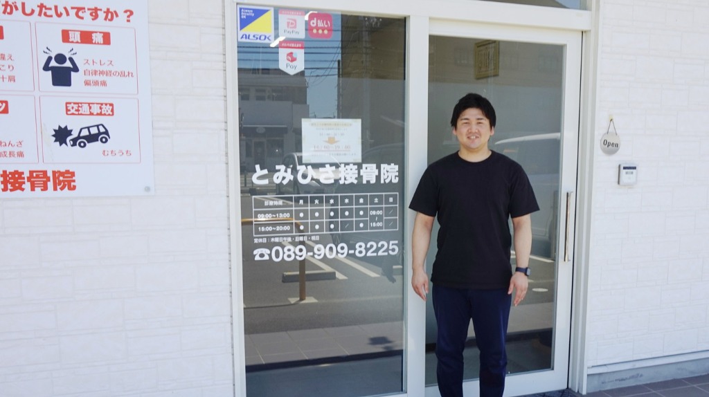 21歳からこの世界で活躍。2年間は兵庫県神戸市の店舗に、3年間は地元・宇和島の店舗にいました。2020年に“とみひさ接骨院”をオープンし、現在に至ります。